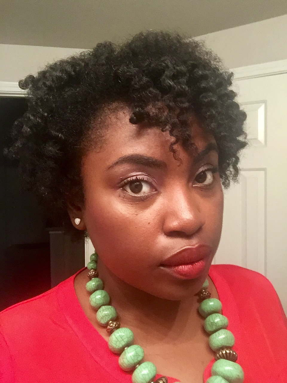 Just recently, however, as I sauntered through the halls of YouTube university, I saw a video by one of the natural hair ladies that I follow; she was sharing her fall makeup routine. When she topped her applied makeup with blush, I paused for a bit. Hmm. We have similar skin tones, I said to myself. Can it be? Can you actually wear blush? Apart from the fact that yes, I speak to myself like a character from Shakespeare (can it be? Why, forsooth, yes it can), I loved how the blush complimented her lovely skin. And quite simply, the color she chose (Black Rasperry by Black Radiance) communicated what I was doing wrong back in the day: I was choosing colors too close to my skin tone, in the fear that a too-bright shade would turn me in your neighborhood clown. But staying in the plum/raspberry family seemed doable. After perusing a thousand stores for Black Radiance products (which have always been good to me), I finally found the Artisan Color Baked Blush in Raspberry. I wore it last night to my house of worship. See below.