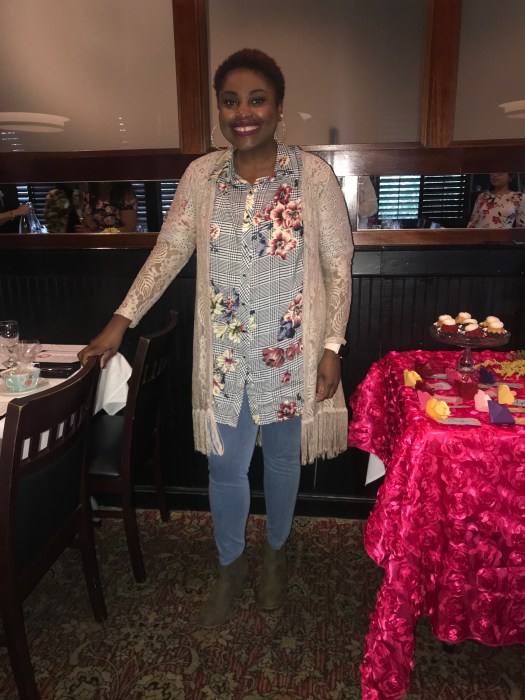 So a good friend of mine threw a beautiful get-together yesterday with a lovely theme: Bloom Where You Are Planted. It was a company of women sharing their favorite quotes or scriptures, dressed or accessorized in a floral theme, ready to swap $3 gifts, and overall gathering together to encourage, uplift, and upbuild. So moving and beautiful. I decided to wear something casually floral and went with a floral blouse, duster, jeans, and booties. Below.